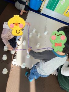協力して紙コップをキャッチして被せたり頑張りましたよ💯