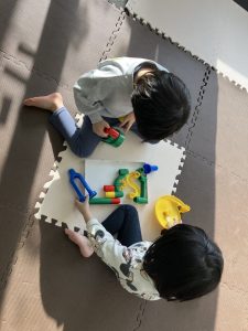 午前中は、ペアになって一緒に組み立てたり、