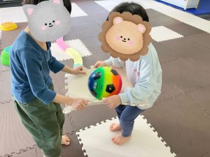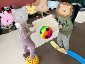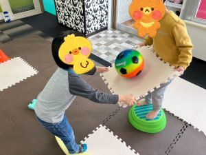 午後は、協力してボールを運びながら障害物を超えていきます👀