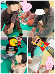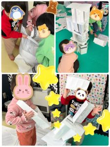 職員の紙タワーに息を吹きかける子も(笑)![]()